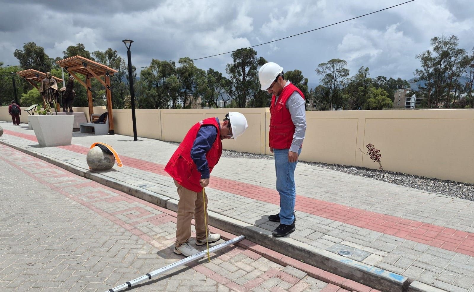 Durante la visita de control, la comisión también identificó hundimientos en veredas, en la calzada peatonal y en el pavimento adoquinado de la obra.